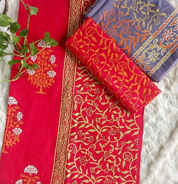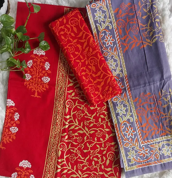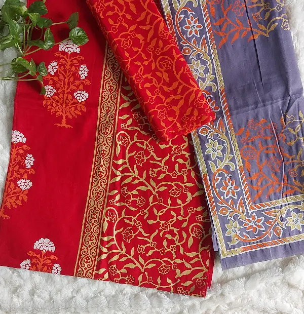 Hand block print unstiched dress