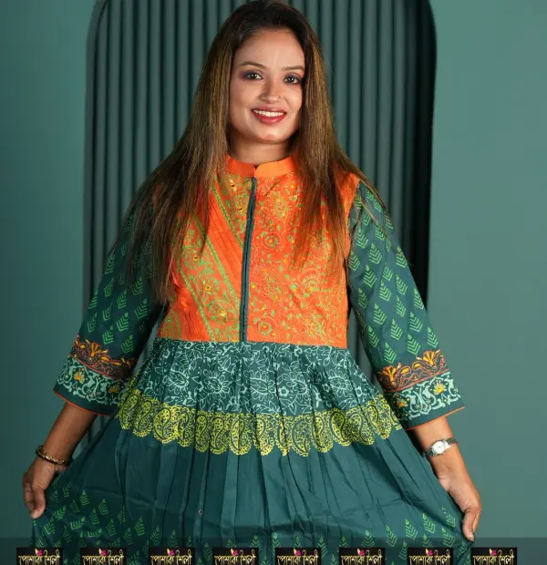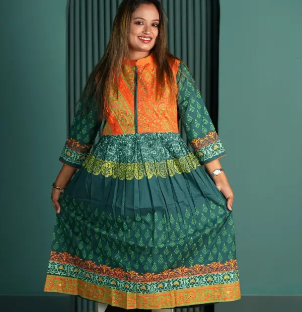 Pure bexi voil fabrics with hand block print & embroedery work .