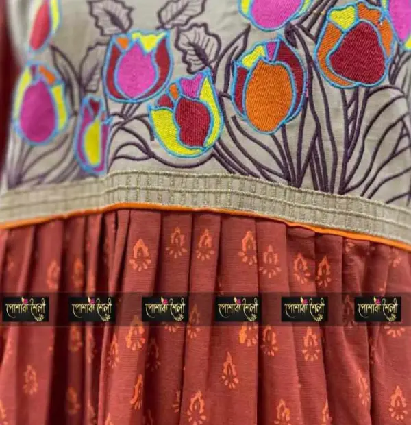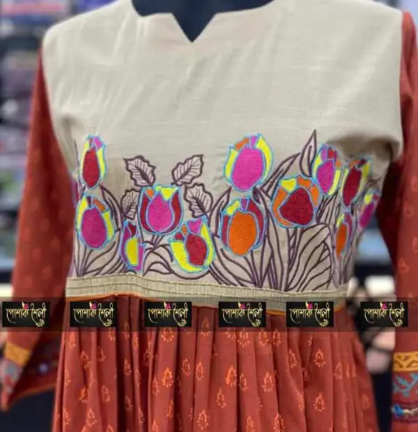 For a simple and elegant look,this beautiful tulips kurti deserves a place on your favorites list! Premimum cotton with nice embroidery work .